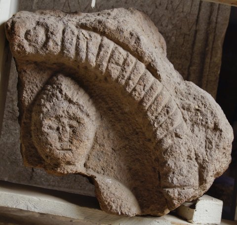 - Stela, non-architectural, with medallion. It is preserved only a part of the medallion that shows the bust of a man.