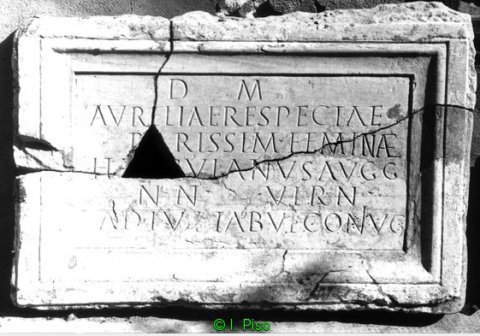 - D(is) M(anibus) / Aureliae Respectae / rarissim(ae) feminae / Herculanus Augg(ustorum) / nn(ostrorum) vern(a) / adiut(or) tabul(arii) coniug(i)