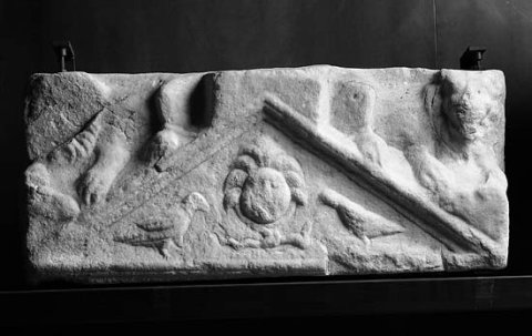 1242 Stelenaufsatz mit Giebel zwischen Löwen