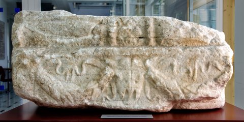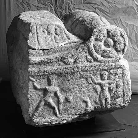 - linke Hälfte abgebr. (wurde 2004 in Kalsdorf gefunden, siehe Diskussionsbeitrag von S. Karl)