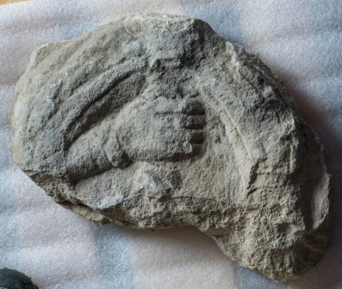 - Brustbild (?) eines Mannes (Soldat ?); Ärmeltunica, Mantel, in der Rechten Schwertgriff (?).