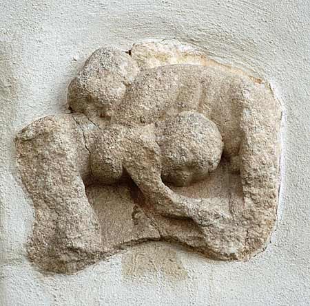 - Zwei nackte kindliche Knaben im Ringkampf.