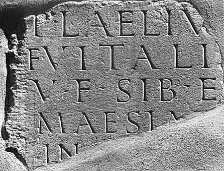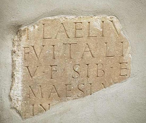 - P(ublius) Laeliu[s] / [P(ublii)?] f(ilius) Vitalis / v(ivus) f(ecit) sib(i) e[t] / Maesiae / In(genuae?) / [con(iugi) an(norum) ---] / [---