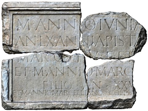 - M(arco) Annio Iunia[no] / an(norum) LX Annia Pistia[na] / mar(ito) opt(imo) v(ivia) f(ecit) et [sibi] / et M(arco) Annio Marc[ello ] / filio an(norum) XXV / et M(arco) Annio Marcelliano |(centurioni) coh(ortis) I A[sturum(?)] / an(norum) XXX
