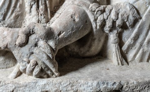 Im Zwickel zwischen den erhaltenen Bogenansätzen Silensmaske. - Kommentar