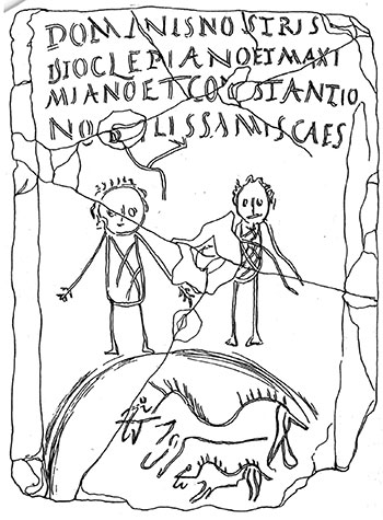12729 Ziegel mit Ritzzeichnung und -inschrift