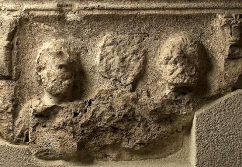 - unten abgebr., stark bestoßen, Relief tlw. abgeschlagen
