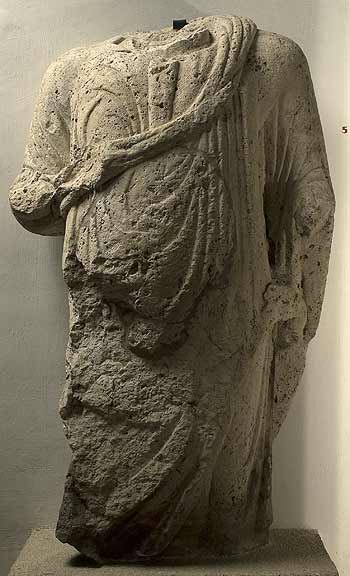 - Kopf, Unterarm und Unterschenkel fehlen, Oberfläche tlw. abgeschlagen