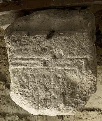 - Fragment der rechten oberen Ecke, stark abgerieben