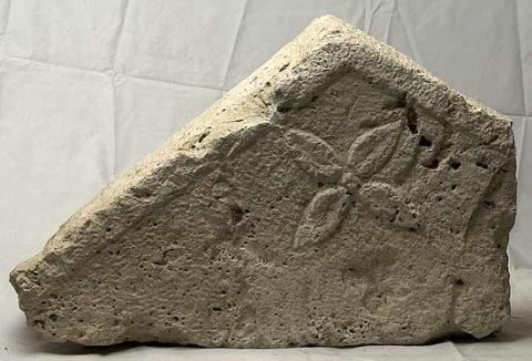 - Giebelspitze oder rechte Ecke eines trapezförmigen Giebelabschlusses. Einfache Rahmenleiste, im Winkel vierblättrige Rosette.