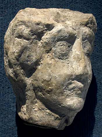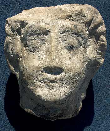 - Bemalungsspuren. Im Hals abgebr., Schädelkaotte fehlt, in der Bruchfläche eckiges Dübelloch