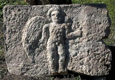 - Ungerahmtes Bildfeld mit geflügeltem nackten Genius (Erot ?). Seitenfeld einer Inschrift ?