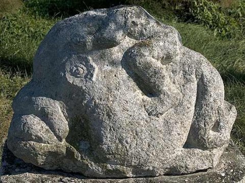 - Auf einem Delphin reitender kleiner Erot. Das Auge des Delphin in Form einer Blüte. Brunnenskulptur ?