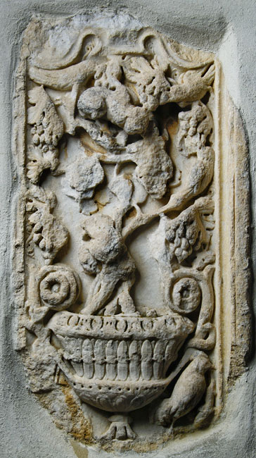 1285 Eckblock mit Weinstock und Tieren
