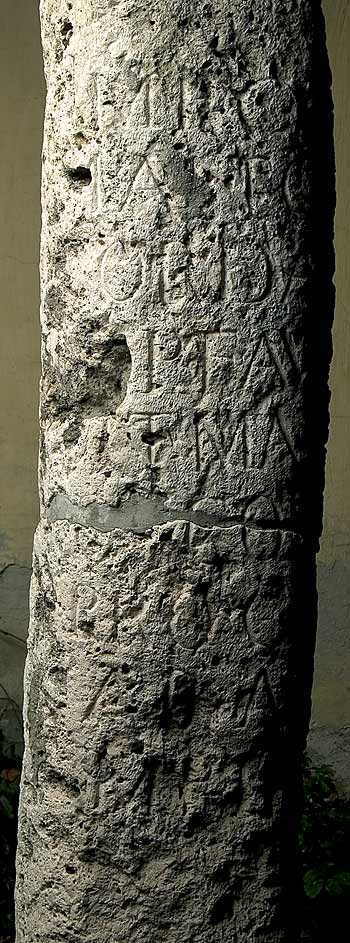 - Imp(eratori) Caes(ari) / M(arco) Antoni(o) / Gordiano / P(io) F(elici) Au(gusto) / pont(ifici) max(imo) trib(unicia) / pot(estate) co(n)s(uli) p(atri) p(atriae) / proco(n)s(uli) / ab Aq(uinco) / m(ilia) p(assuum) LI