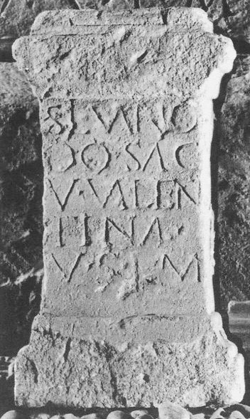 - Silvano / Do(mestico) sac(rum) / V(aleria?) Valen/tina / v(otum) s(olvit) l(ibens) m(erito)