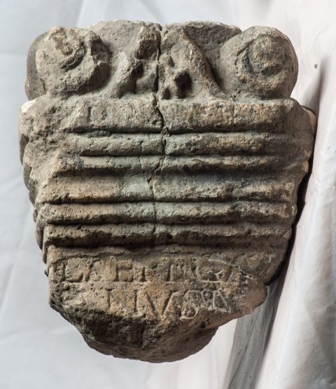 - Volutenpolster (pulvini), dazwischen kleines Giebelfeld mit Sternrosette. Auf der Oberseite runde Schale.