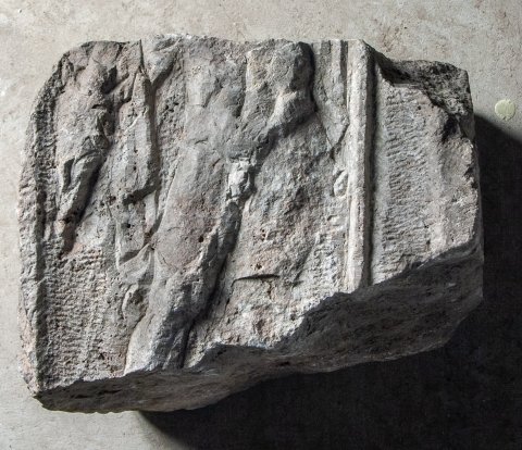 - Auf der linken Nebenseite mythische Figur: stehender nackter Jupiter, in der Rechten Blitzbündel, Mantel über linker Schulter und rechtem Arm. Rechts einfaches Rahmenprofil.