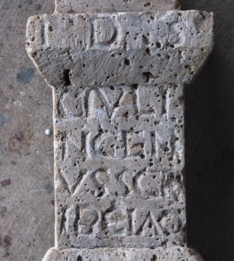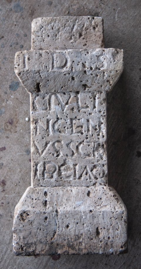 - I(nvicto) d(eo) s(acrum) // C(aius) Iul(ius) I/ngen/u(u)s scr/ib(a) ci(vitatis) Aq(uincensium)