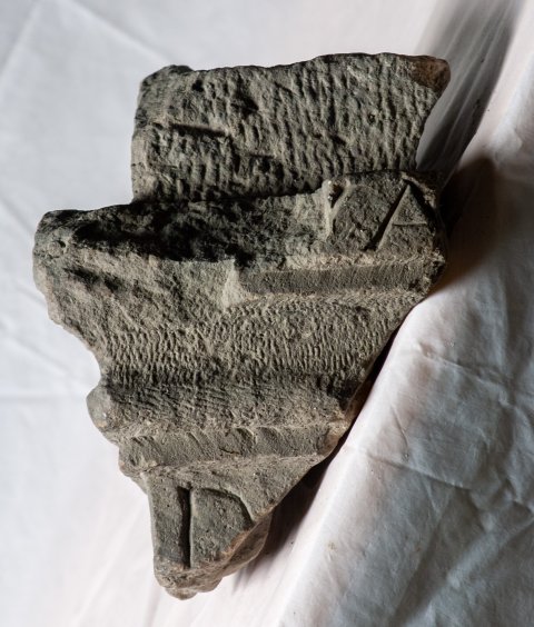 - nur linke obere Ecke erhalten, rückwärts abgebr.