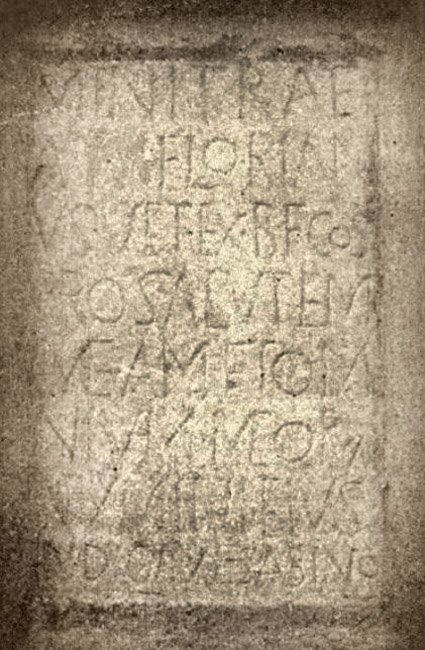 - Minitrae / Aur(elius) Florian/us vet(eranus) ex b(ene)f(iciario) co(n)s(ularis) / pro salute{m} / mea{m} et om/nium meorum / numini eius / didicavi Sabino // II et Venusto co(n)s(ulibus)