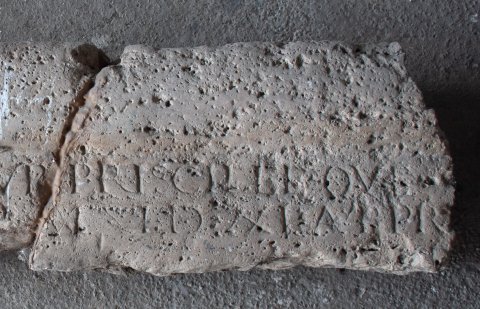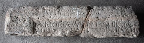 - unten u. rechts abgebr., in 2 Teile zerbrochen, stark abgerieben