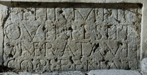 - Fl(avio) Firmano [dec(urioni)?] / Ovilavis L(ucia) Sept[im(ia)] / Onerata vi(va) f[ec(it)] / co(niugi) pi(entissimo) et Fl(avio) Nati[vo] / et F(lavio) Maturo [fil(iis)]