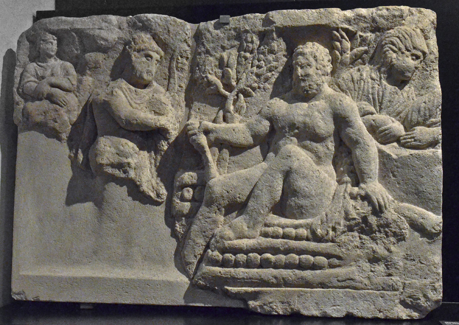 132 Relief mit Hercules auf dem Scheiterhaufen
