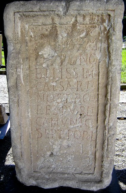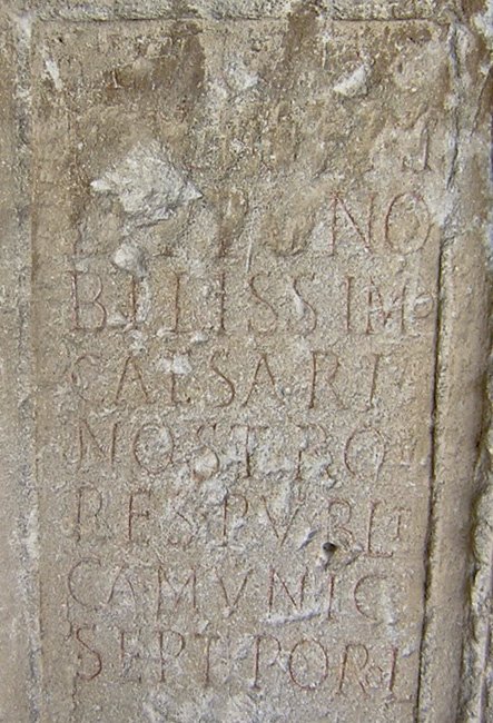 - [[M(arco) Iul(io) Se]]/[[vero]] Phi/lippo no/bilissimo / Caesari / nostro / res publi/ca munic(ipii) / Sept(imi) Porol(issensium)