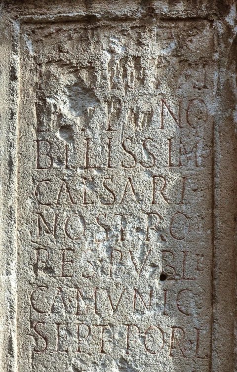 - [[M(arco) Iul(io) Se]]/[[vero]] Phi/lippo no/bilissimo / Caesari / nostro / res publi/ca munic(ipii) / Sept(imi) Porol(issensium)