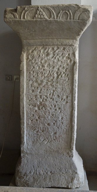 - [[Herenniae Etrus]]/[[cillae sanctissimae]] / [[Augustae coniugi d(omini) n(ostri)]] / [[Traiani Deci Aug(usti)]] / [[matri Deci et Quin]]/[[ti Augg(ustorum)]] et castro/rum senatus ac / patriae n(umerus) Pal(myrenorum) / Porol(issensium) sag(ittariorum) c(ivium) R(omanorum) / Decianus dica/tissimus numi/ni eorum