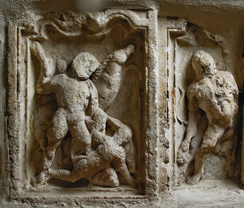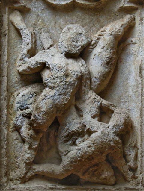 - Mythos (Hercules). Linkes Seitenfeld: Herakles und die Rosse des Diomedes. Im anschließenden Mittelfeld Herakles mit dem kretischen Stier.