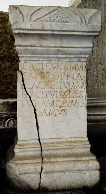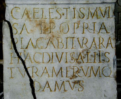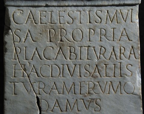 - Caelestis mul/sa propria / placabitur ara / hac divis aliis / tura merumque / damus