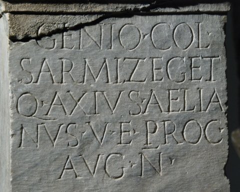 - Genio col(oniae) / Sarmizeget(usae) / Q(uintus) Axius Aelia/nus v(ir) e(gregius) proc(urator) / Aug(usti) n(ostri)