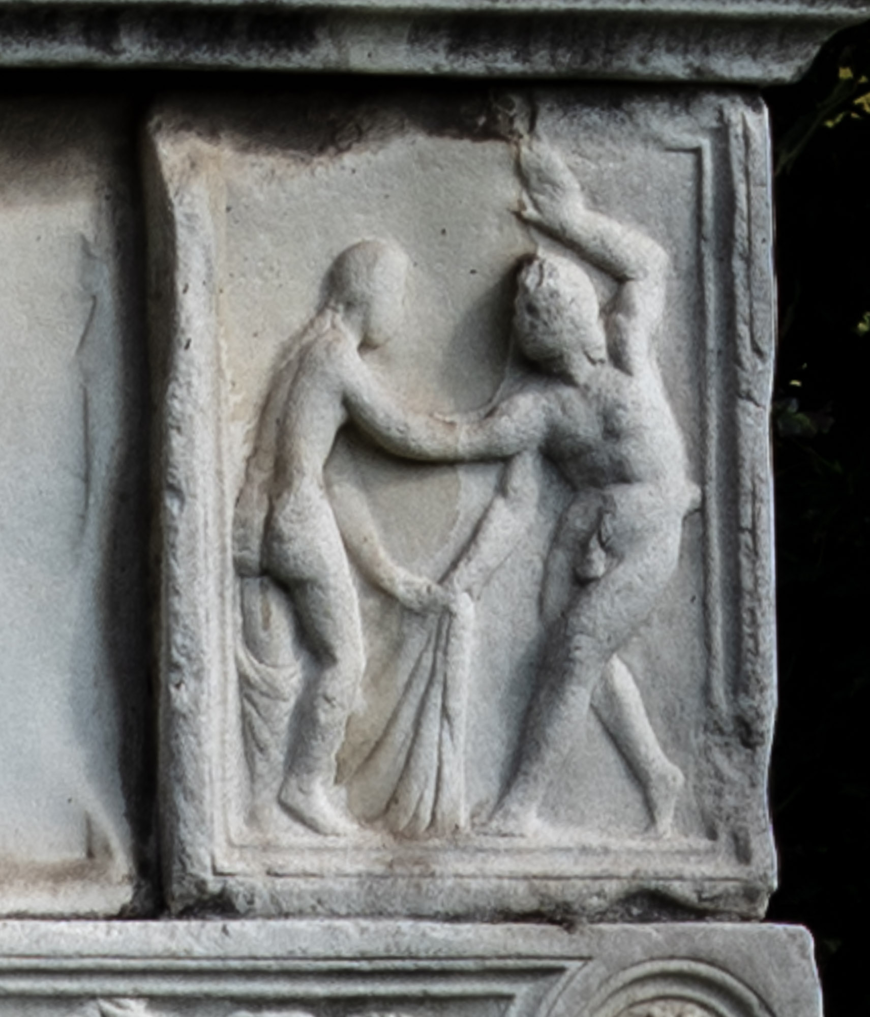 13258 Reliefblock mit Satyr, Mänade und Heros von der Grabaedicula der Spectatii