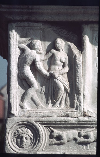 13259 Reliefblock mit Satyr, Mänade und Hercules von der Grabaedicula der Spectatii