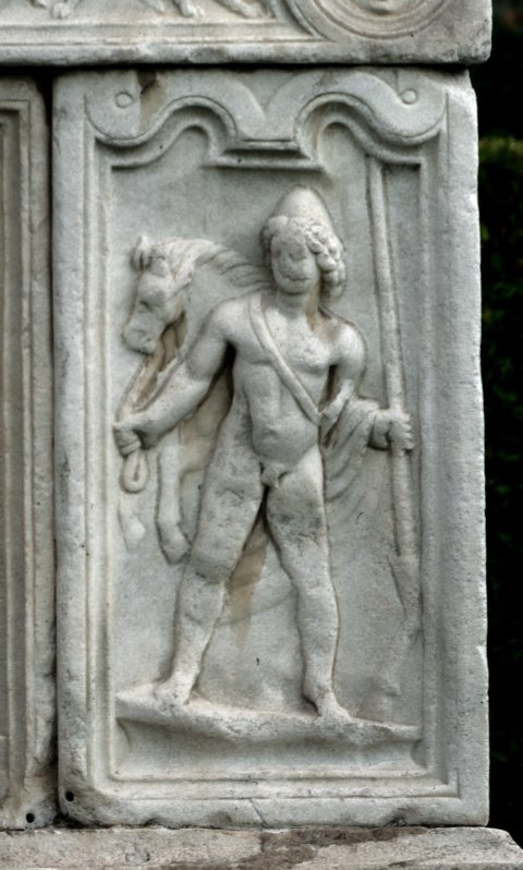 13265 Reliefblock mit Dioskur und Jahreszeit von der Grabaedicula der Spectatii