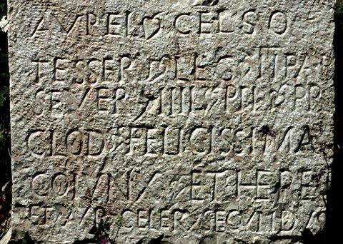 - D(is) M(anibus) // Aurel(io) Celso / tesser(ario) leg(ionis) II Par(thicae) / Sever(ianae) |(centuria) IIII pil(i) pr(ioris) / Clod(ia) Felicissima / co(n)iunx et heres / et Aur(elius) Celer secundus / [heres ---]