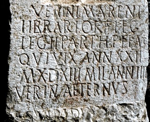 D(is) M(anibus) // Verini Marini / librari(i) off(icii) leg(ati) / leg(ionis) II Parth(icae) P(iae) F(elicis) F(idelis) A(e)t(ernae) / qui vix(it) ann(os) XXII / m(enses) X d(ies) XIII mil(itavit) ann(os) IIII / Verin(ius) Aeternus / [---]IPIDV[---]