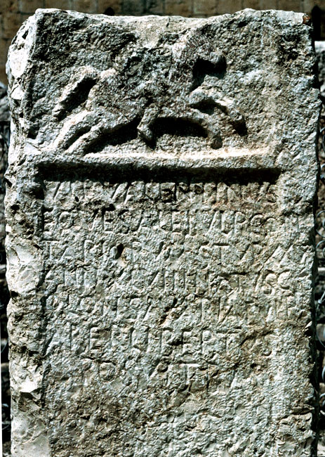 - Ulp(ius) Valentinus / eques al(a)e I Ulp(iae) con/tariorum stup(endiorum) (!) XXX / ann(is) XCVII natus C/[-] Constantiae Ulp(ius) / Aper libertus / posuit b(ene) m(erenti)