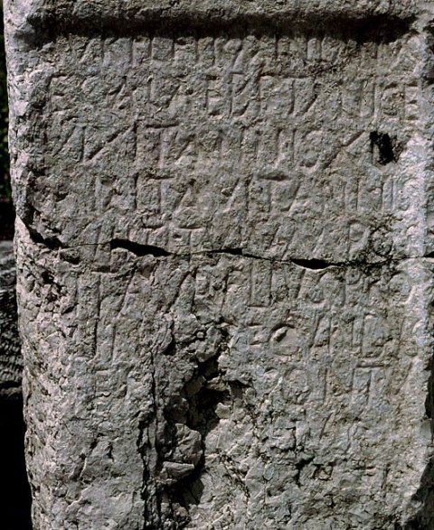 - Aurel(ius) Firminianus / eq(ues) alae Br(i)tan(n)ic(a)e / vixit annis XLV / militavit annis / [X]XIII titulum pos/[u]it Aurelius Pro/[b]in[us] eq(ues) al(ae) dis(cens) / et [---]ontu/[-----]ius / [--- ?