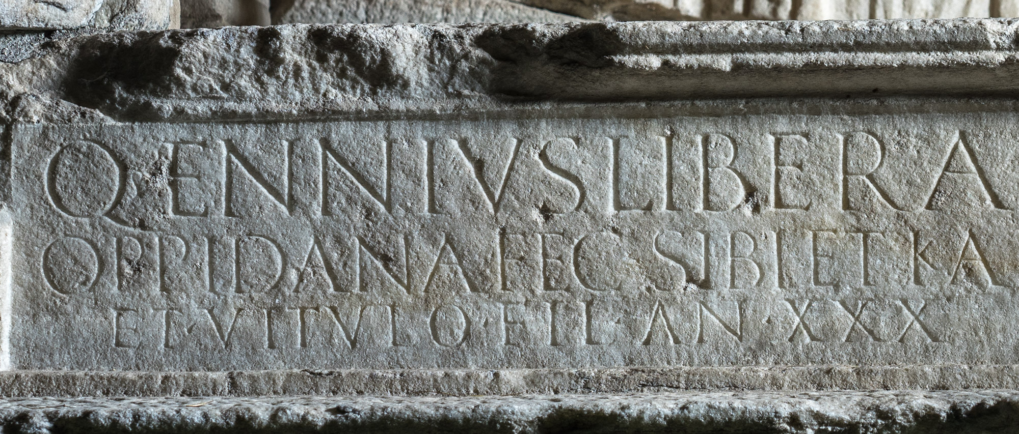 13332 Zwischengesims mit Inschrift vom Grabmal des Quintus Ennius Liberalis