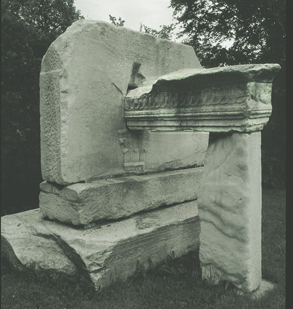 13348 Teil der Rückwand und Epistylblock eines Grabbaus