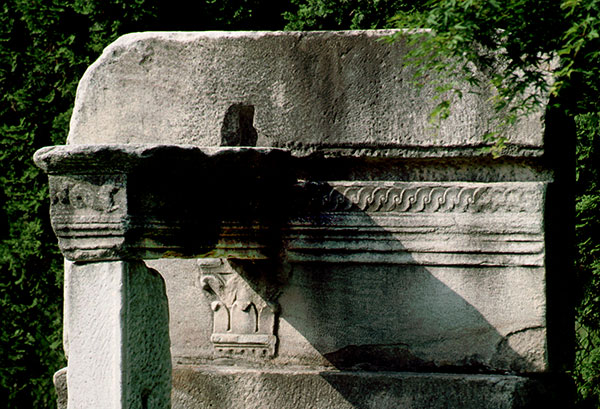 13348 Teil der Rückwand und Epistylblock eines Grabbaus