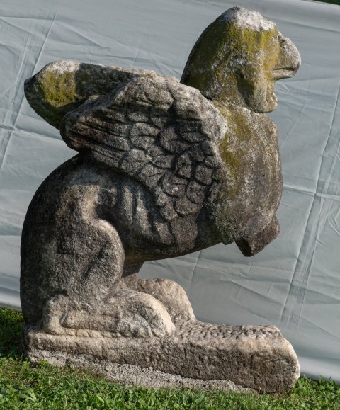 - Hockender Greif und Kopffragment eines Pendants, Akrotere eines Grabbaus.
