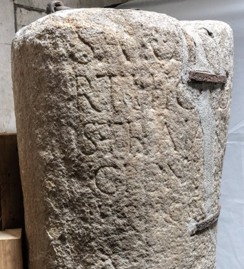- [Imp(erator) Cae]sar d[i]vi / [Traiani P]arthici f(ilius) divi / [Nervae nepo]s Traianus / [Hadrianus] Aug(ustus) pont(ifex) max(imus) / [trib(unicia) pot(estate) XVI co(n)s(ul) I]II p(ater) p(atriae)