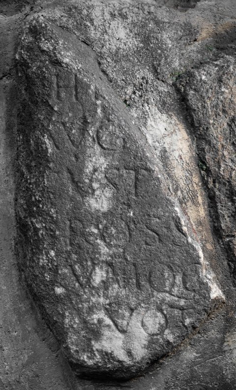 - I(ovi) O(ptimo) M(aximo) Cul(minalis) / Iun(oni) Reg(inae) et / Gen(io) loci / Philadespotus / Augg(ustorum) nn(ostrorum) ver[n(a)] / cust(os) [t]abul(arii) / pro s(alute) s[ua suo]/rumq(ue) o[mnium] / ex voto [---