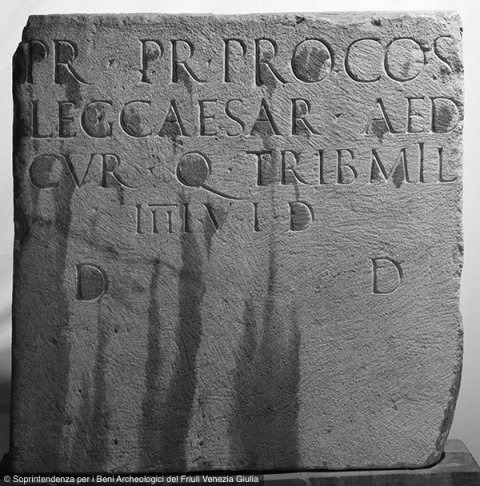 - ] / [--- leg(ato)] / pr(o) pr(aetore) proco(n)s(ulis) / leg(ato) Caesar(is) aed(ili) / cur(uli) q(uaestori) trib(uno) mil(itum) / IIIIv(iro) i(ure) d(icundo) / d(ecreto) d(ecurionum)