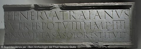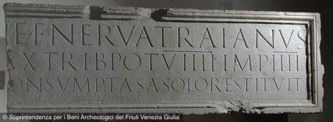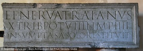 - CIL 05, 00854; InscrAqu-01, 00437; AE 2002, 00530; Horster, Bauinschriften römischer Kaiser 2001, 83. 335 Nr. X 2; Alföldy, Epigraphica 64, 2002, 139 Nr. 33; Lettich, Itinerari Epigrafici Aquileiesi 2003, 71