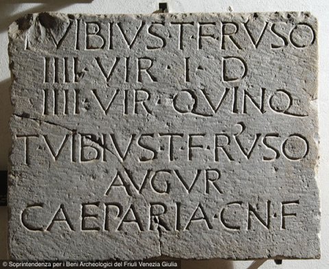 L(ucius) Vibius T(iti) f(ilius) Ruso / IIIIvir i(ure) d(icundo) / IIIIvir quinq(uennalis) / T(itus) Vibius T(iti) f(ilius) Ruso / augur / Caeparia Cn(aei) f(ilia) - Funktion